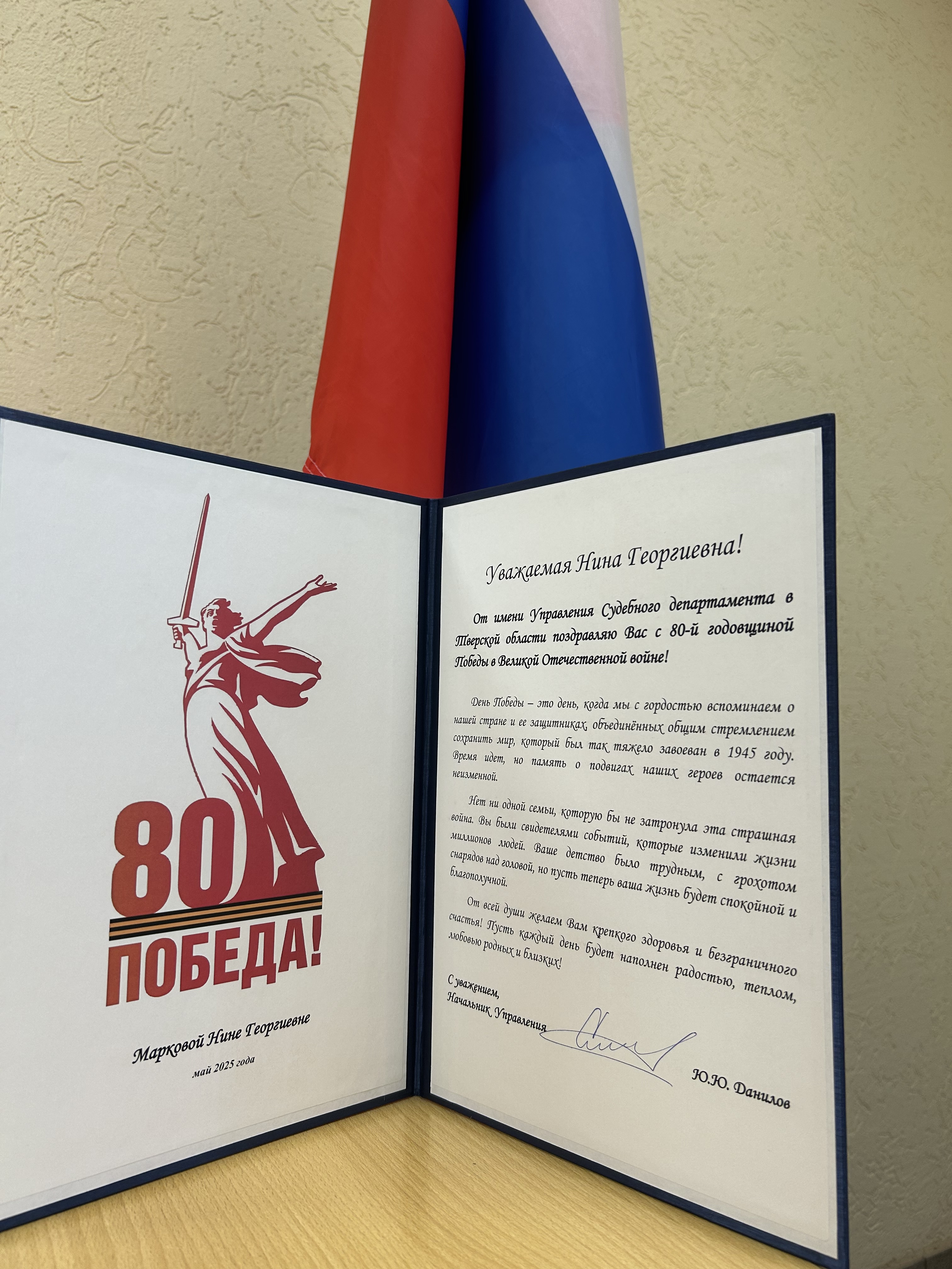 Фотогалерея от 24.04.2025 — В Лихославльском районном суде вручили поздравление судье в отставке – ребенку войны